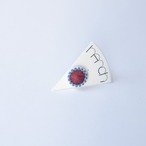 アクリルを加工し、天然由来の繊維(ラフィア・レーヨン・和紙など)やガラスビーズを刺繍したピンバッジです。