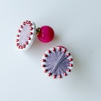 アクリルを加工し、天然由来の繊維(ラフィア・レーヨン・和紙など)やガラスビーズを刺繍した耳飾りです。