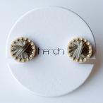 アクリルを加工し、天然由来の繊維(ラフィア・レーヨン・和紙など)やガラスビーズを刺繍した耳飾りです。